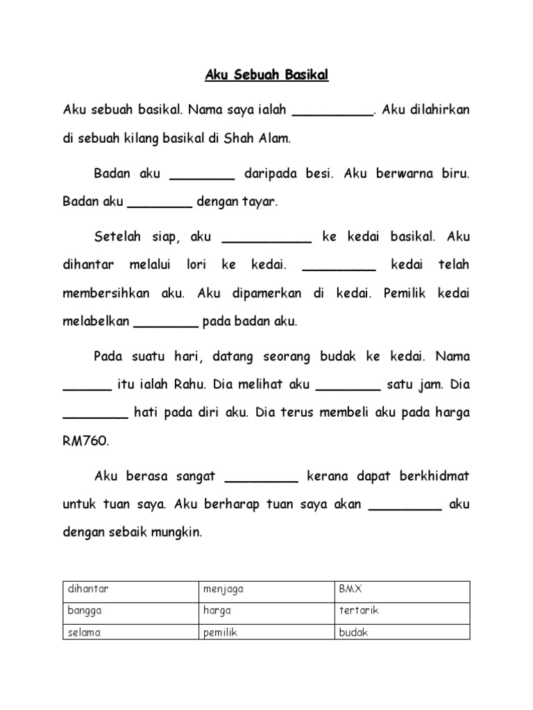 Layari dan langgan modul pembelajaran l. Contoh karangan aku sebuah basikal- aku ialah sebuah basikal yang berjenama dorris- aku dilahirkan di sebuah kilang yang terdapat di selangor darul ehsan- pada. Pengenalan - berasal dari Jepundibuat di sebuah kilang besi wajaterdiri daripada besi waja.
